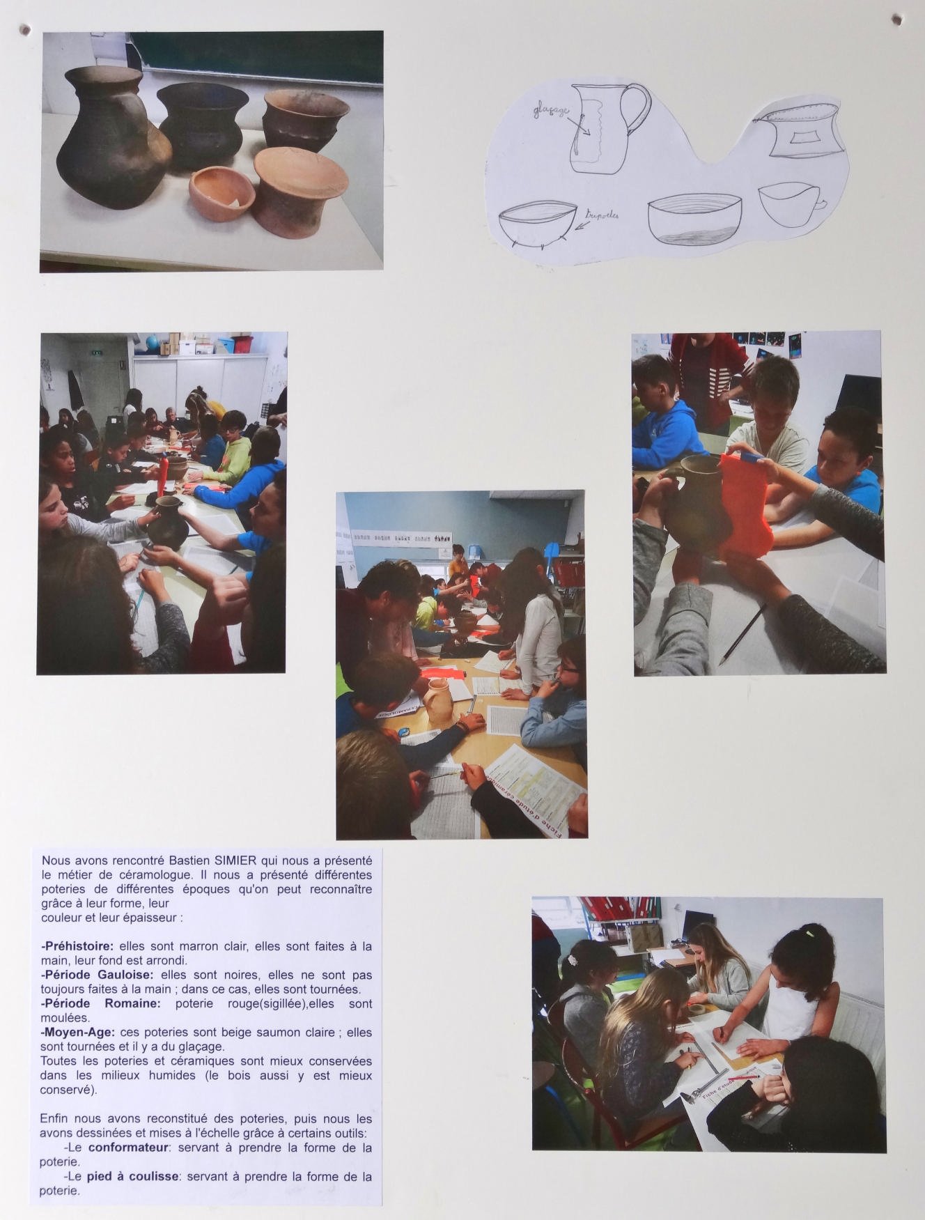 Lors de Journées Nationales de l'Archéologie de juin 2017, les élèves ont présenté une exposition de restitution de leurs séances.
